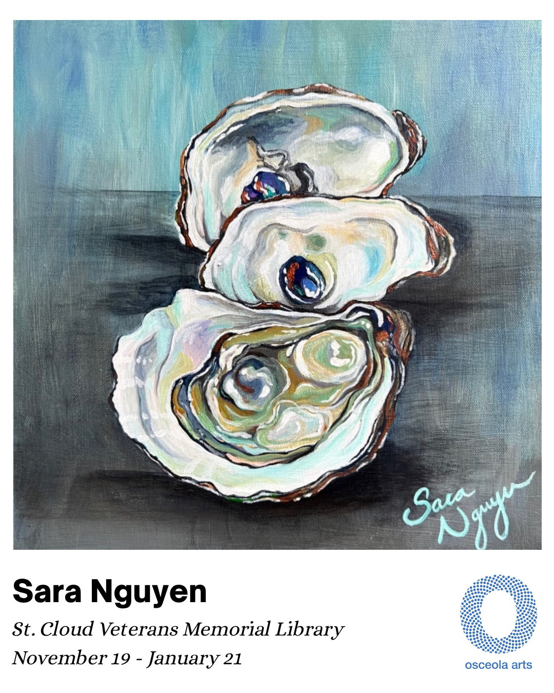Osceola Arts and the Osceola Library System partner to present the “Art in Public Places” program. Original art created by Florida artists is displayed on library walls, providing a unique artistic and cultural way to engage the community and enhance the library experience.